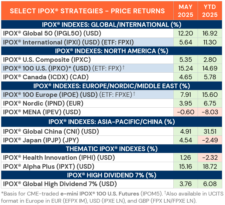 Earnings Trump Yields: IPOX® Indexes defy Yield Angst to soar in May.