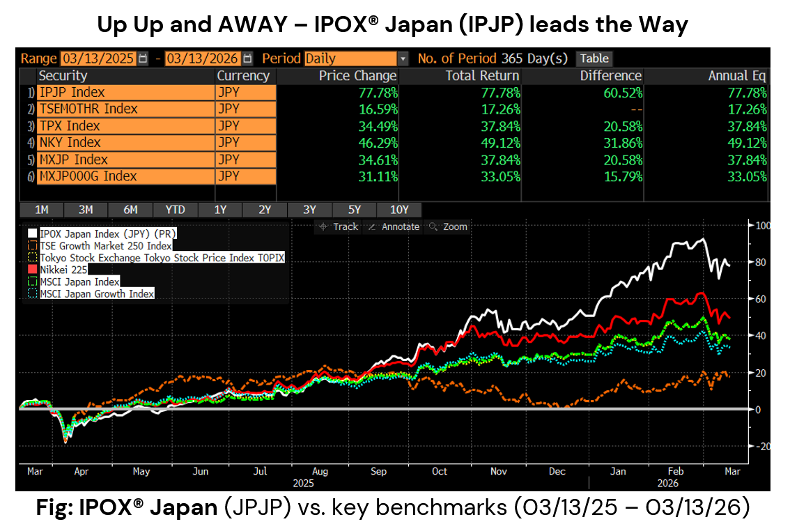 Outstanding: IPOX® Japan (IPJP) leads with +17.98% YTD performance jump.